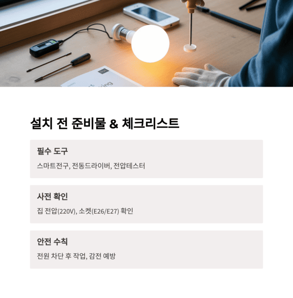 이 글에서는 스마트조명 설치가 처음인 초보자도 쉽게 따라 할 수 있도록 준비물, 설치 방법, 주의사항까지 순서대로 자세히 설명해 드리겠습니다.