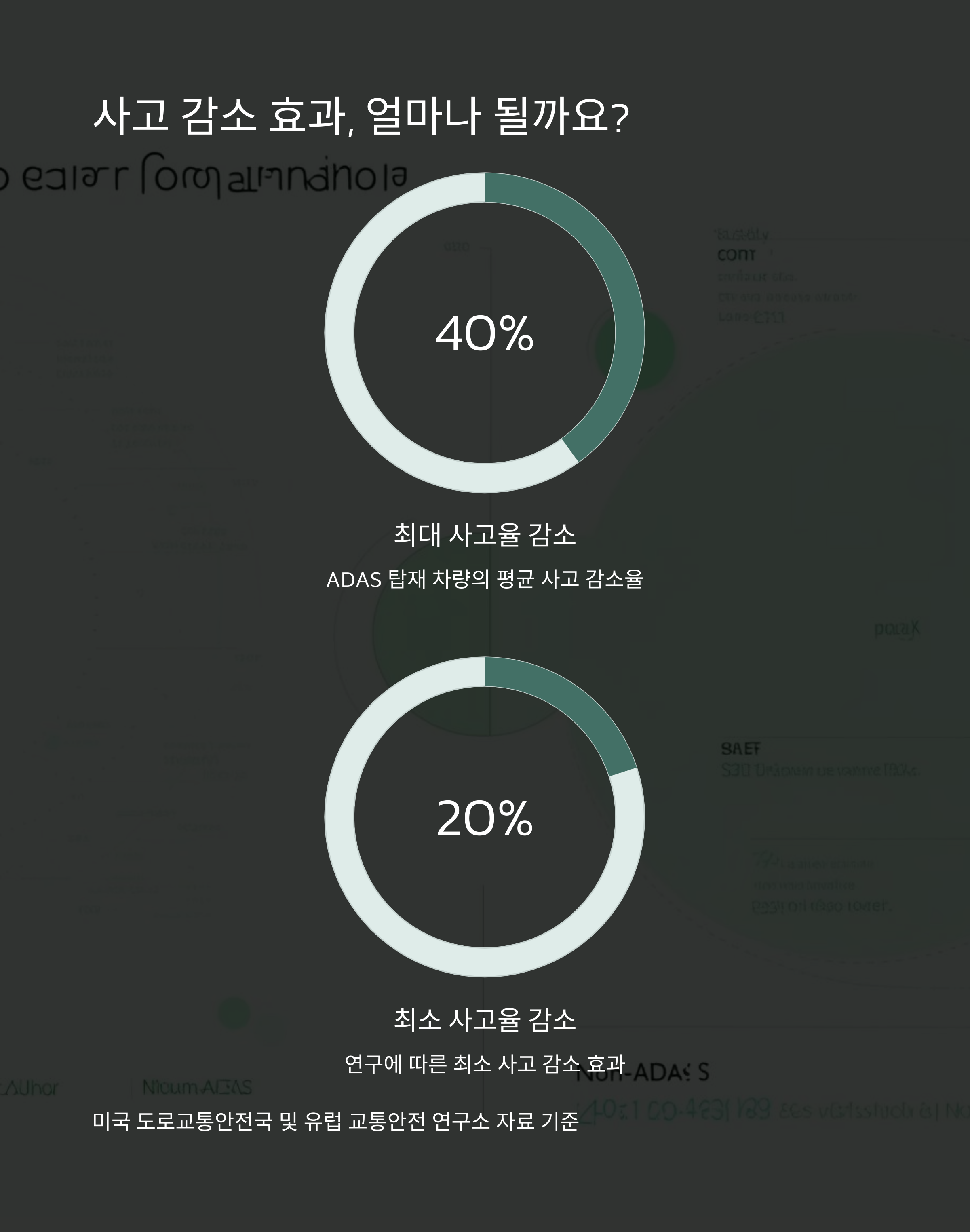 ADAS가 탑재된 차량은 일반 차량보다 평균 20~40% 정도 사고율이 낮은 것으로 나타났습니다.