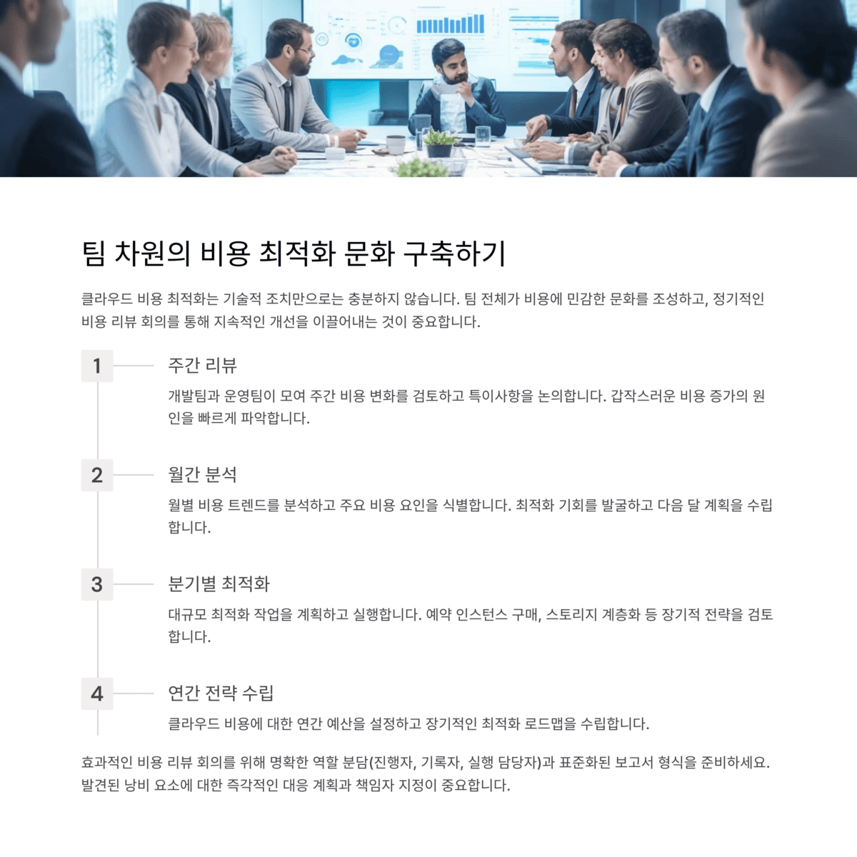 클라우드 비용을 정기적으로 팀 차원에서 리뷰하고,