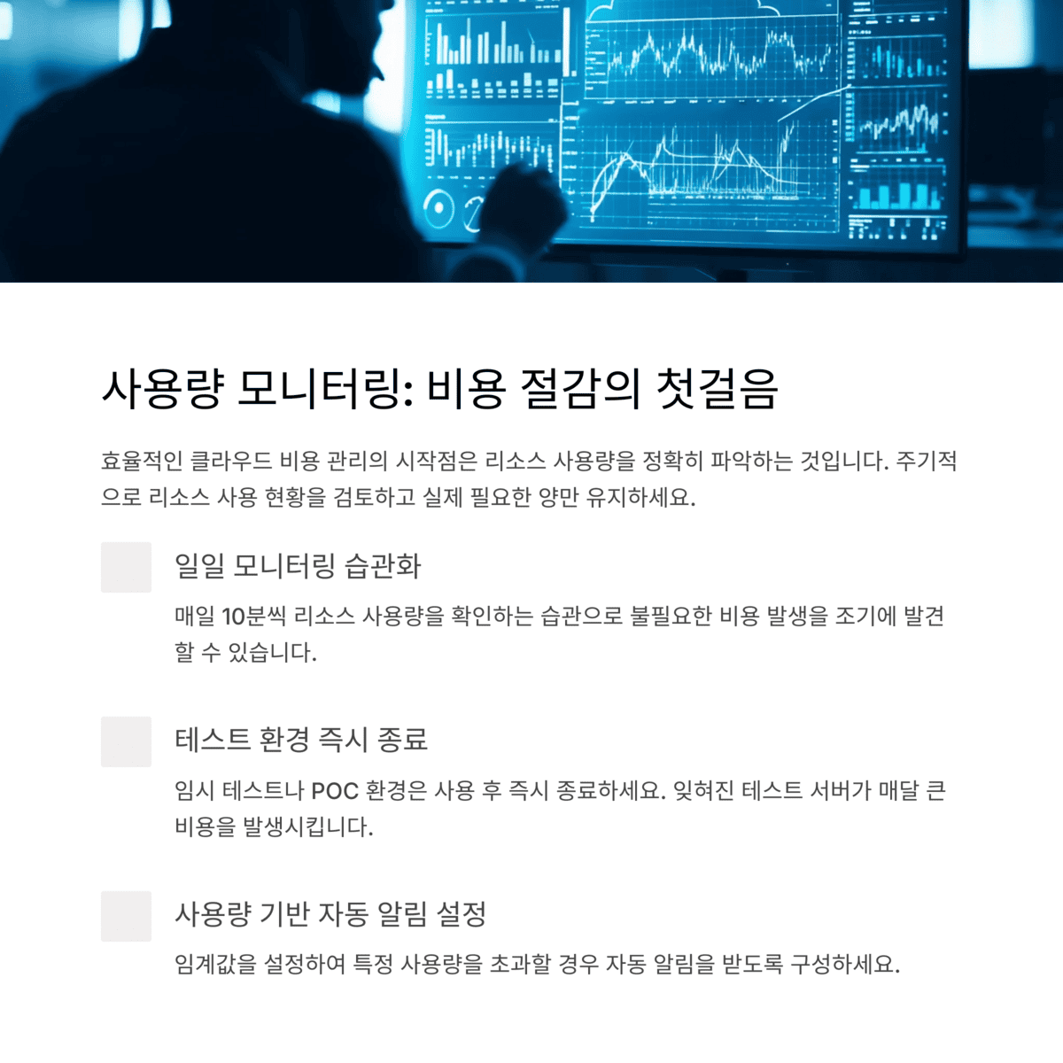 비용 절감의 출발점입니다. 특히 테스트 서버나 이벤트성 인스턴스는